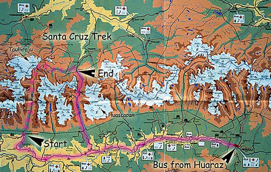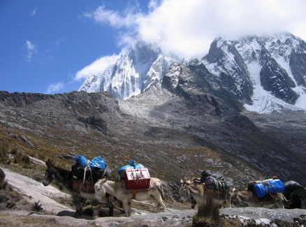Von Huaráz fahren Sie ca. 1 Stunde in Richtung Norden in den Callejón de Huaylas hinab bis nach Caraz (2200 m). Jetzt geht es auf einer unbefestigten Straße in die Cordillera Blanca hinein, bis Sie nach ca. 2 Stunden das kleine Dorf Cashapampa auf 3050 m erreichen. Dort treffen Sie Ihre Begleitmannschaft – den Guide, die Köche und Maultiertreiber. Nachdem die Esel mit der Ausrüstung beladen sind, beginnt die Wanderung im Santa-Cruz-Tal im Huascaran NP (UNESCO). Ihr erstes Zeltlager wird in Llamacorral auf 3750 m Höhe aufgeschlagen. (Gehzeit ca. 4h, 900 m↑). (F/M/A)
