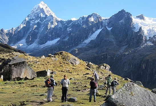 Heute geht es eine weitere Stunde bergab bis zum Andendorf Colcabamba (3400 m) und wieder hinauf nach Vaquería (3700 m). Sie wandern dabei immer das Tal entlang, von wo aus man einen fantastischen Blick auf die kühne Nadel des Chacraraju (6112 m) hat, bis Sie schließlich die kleine Siedlung Vaquería erreichen. Hier werden Sie schon vom Bus erwartet, der Sie hinauf auf einen zweiten Pass bringt. Mit etwas Glück können Sie den Huascarán, den mit 6768 m höchsten Berg Perús, bewundern. Danach fahren Sie hinab bis zu den bekannten Lagunas Llanganuco. Hier können Sie die Schönheit der Bergseen bewundern, bevor Sie der Bus zurück nach Huaráz bringt. Übernachtung im Hotel. (Gehzeit ca. 2h, 300 m↑, 200 m↓). (F/M/-) |